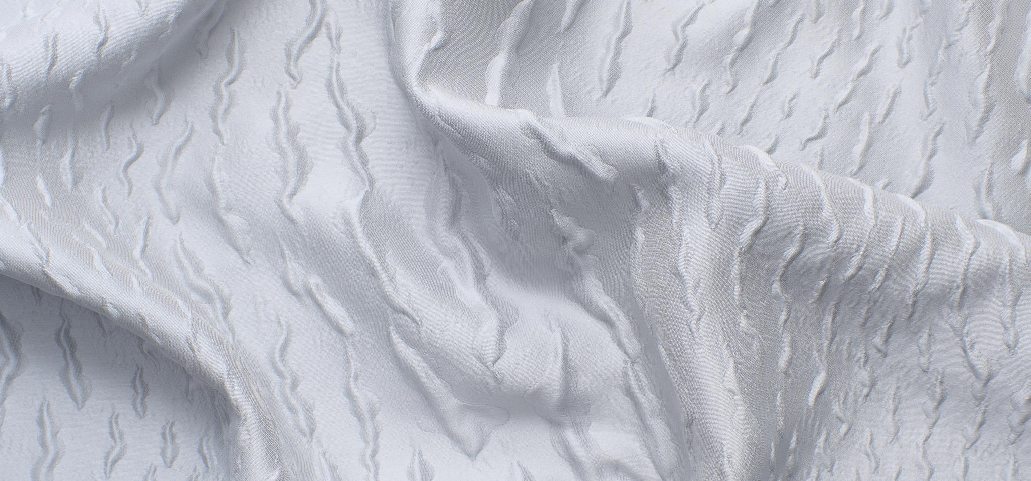 A chiudere il cerchio Salila, che è una reinterpretazione tecnica della tradizione artigianale. La sua superficie è definita da motivi botanici astratti, scalati fino a diventare texture pura. Il cuore del tessuto risiede nella sua lavorazione: un intreccio a due strati che viene tagliato in fase di finitura per liberare delicate frange che danno movimento e tridimensionalità alla materia.