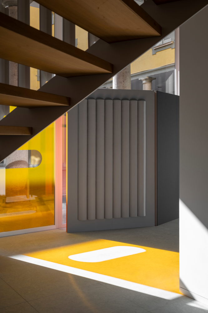 the space. Outside the showroom, large panels of Diade in assorted colourways flank the front facade. Together with a matching vitrine, these elements provide rich insights into the character of the new upholstery and showcase the artists celebrated eye for colour, artistic vision, and talent for articulating compelling narratives.