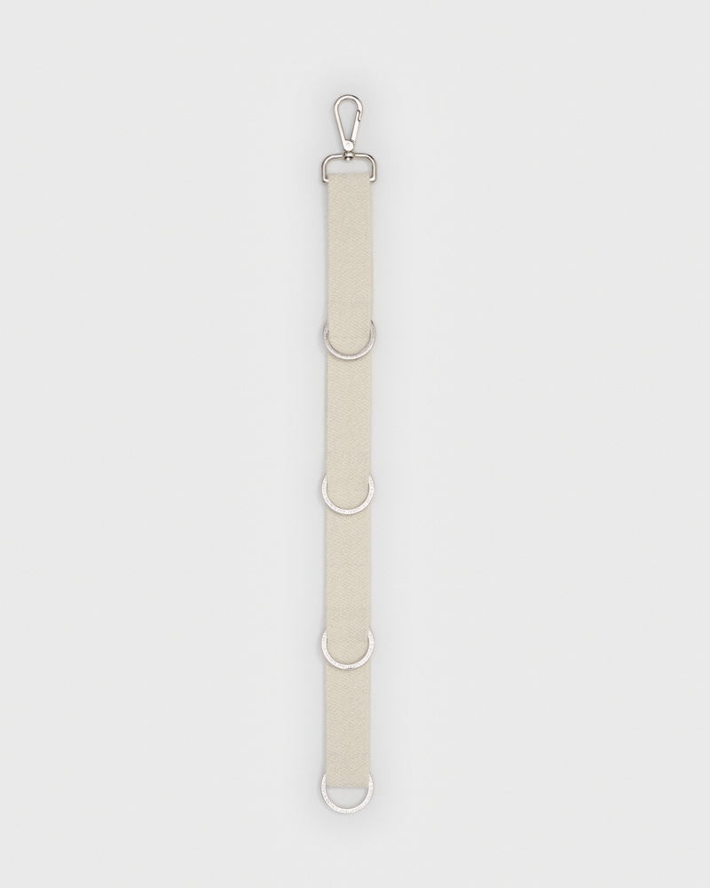 The foundation is a horizontal bar inspired by the Shaker peg rail, but sculptural in its proportions. The use of a single colour sets the atmosphere. The protagonist of the system is Vidar 4, the emblematic fabric of the Kvadrat/Raf Simons collection. Simons uses it to upholster the bar, for most of the accessories and to set the palette.