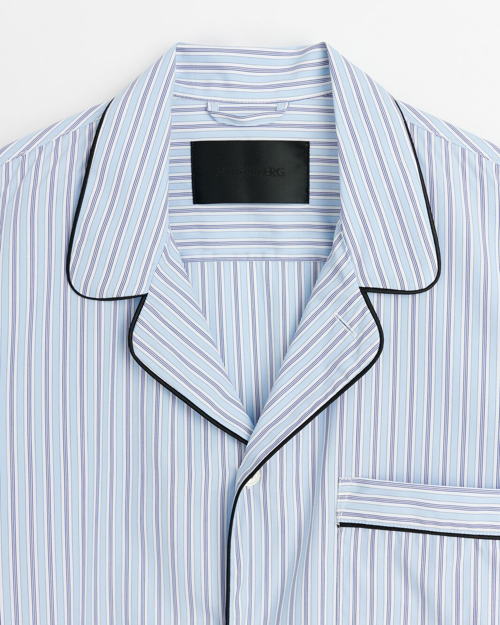 Sugar is made with a Thomas Mason textile, also with contrasting black or white piping. Thomas Mason has been making premium shirting textile since 1796, and is known for its rich poplin, unwavering quality and heritage. Sugar comes in two different stripes in classic shirt and pants, with contrast piping and the black Magniberg label. Also a top and boxer with a touch of pyjama attitude and a lot of fluidity and freedom. Sugar is approached by making pyjamas with the mindset of appraising every single thing.